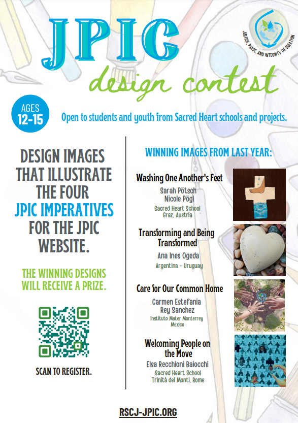 Deadline extended to March 31! The International JPIC Learning Hub sponsors the JPIC Design Contest for youth ages 12-15 from Sacred Heart schools and ministries around the world. Prizes for winning designs! Download the flyer to learn more.